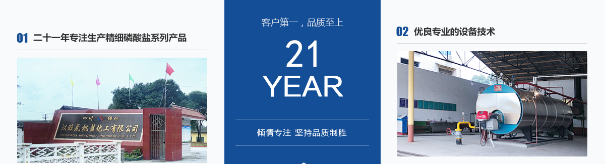 本公司位于四川省綿竹市漢旺鎮(zhèn),是自1997年成立以來(lái)至今,已發(fā)展成為四川生產(chǎn)經(jīng)驗(yàn)豐富的精細(xì)磷酸鹽系列產(chǎn)品專(zhuān)業(yè)生產(chǎn)廠家,地理位置優(yōu)越,毗鄰四川新市和拱星工業(yè)園區(qū),與什邡磷化工生產(chǎn)基地交相輝映。主要生產(chǎn)產(chǎn)品有:磷酸二氫鉀、酸式磷酸鉀、磷酸氫二鉀、磷酸脲、磷酸二氫鈉、磷酸氫二鈉、磷酸三鈉、磷酸二氫銨、磷酸氫二銨等系列磷酸鹽產(chǎn)品。